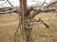 3、刮除病斑。在休眠期刮掉病粗皮,集中燒毀。亦可在7~8月重刮皮。