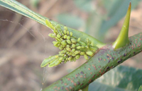 主要危害幼嫩組織,影響組織生長,嚴重時造成樹勢衰弱、大量落果。