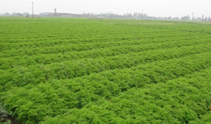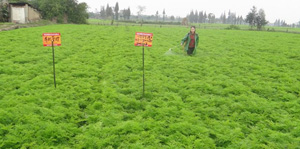 川芎8月份栽種后,莖節(jié)上的腋芽隨機(jī)萌動(dòng),抽動(dòng)幼葉,栽后的第1個(gè)月地上部生長(zhǎng)緩慢。9月中旬至12月份前地上部旺盛生長(zhǎng),葉內(nèi)干物質(zhì)逐漸積累,地下根莖生長(zhǎng)較慢,12月份前地上部生長(zhǎng)基本穩(wěn)定,12月份后轉(zhuǎn)入地下根莖干物質(zhì)積累,根莖迅速膨大,因此此時(shí)正是根莖迅速膨大和積累干物質(zhì)的關(guān)鍵時(shí)候,通過(guò)有效的化學(xué)調(diào)控可以顯著的提高川芎的產(chǎn)量和干物質(zhì)的積累。2013年彭州市敖平鎮(zhèn)川芎種植戶劉應(yīng)芝使用以下化學(xué)調(diào)控技術(shù),其川芎增產(chǎn)率達(dá)到20%以上。具體使用技術(shù)如下: