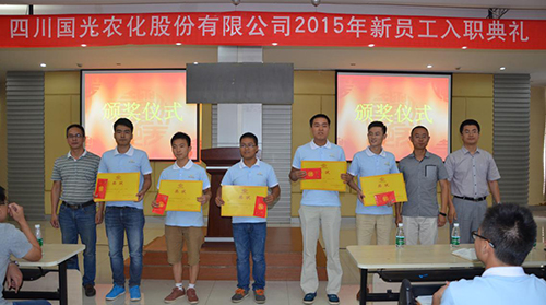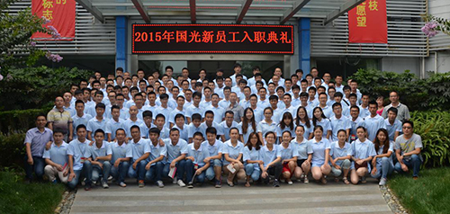 2015年7月16日,國(guó)光股份舉行了2015年新員工入職典禮,138名新員工光榮地加入國(guó)光大家庭。公司總經(jīng)理及部分高管致辭,對(duì)新員工表示熱烈歡迎,并寄予了殷切期望,要求新員工要以“和、誠(chéng)、真、新”的做人態(tài)度、“定、思、行”的做事方式,用感恩和愛(ài)的心態(tài)努力學(xué)習(xí)和工作。新員工代表謝超熱情洋溢地談感受、表決心,贏得了全場(chǎng)的掌聲!在典禮上還為特別優(yōu)秀實(shí)習(xí)生候陽(yáng);優(yōu)秀實(shí)習(xí)生:晏國(guó)強(qiáng)、王恒、謝超、芧萬(wàn)宇頒發(fā)了獎(jiǎng)狀和獎(jiǎng)金。
