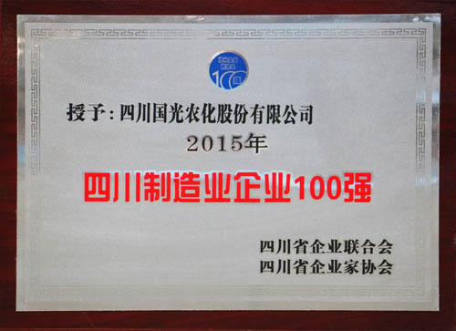 20151126日下午,四川省企業聯合會、四川省企業家協會發布了《2015四川企業發展報告》,我公司再次榮獲四川制造業百強企業。四川國光農資有限公司榮獲四川服務業百強企業。