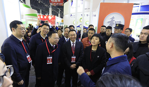 開幕式結(jié)束后,領導們共同步入展館蒞臨參觀,在走到國光展位時,領導們與國光副董事長、總經(jīng)理顏亞奇進行了親切交流,肯定了國光在植物生長調(diào)節(jié)劑推廣上所開展的工作,并聆聽了國光的企業(yè)文化介紹。