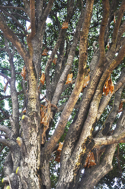 從10月15日開始開挖,到今天成功搬家,再到下一步的“生根發(fā)芽”,如何確保這棵桂花王順利適應(yīng)新環(huán)境?來自四川農(nóng)大的碩士王天龍介紹,從15日開始,技術(shù)人員定期往樹葉上噴灑抑制蒸騰劑,以減少水分蒸發(fā)。同時(shí)使用營業(yè)液為枝干補(bǔ)充能量。“目前我們使用的營養(yǎng)液已經(jīng)超過300公斤,你看樹干上一袋袋,掛的都是營養(yǎng)液。”王天龍笑著說。